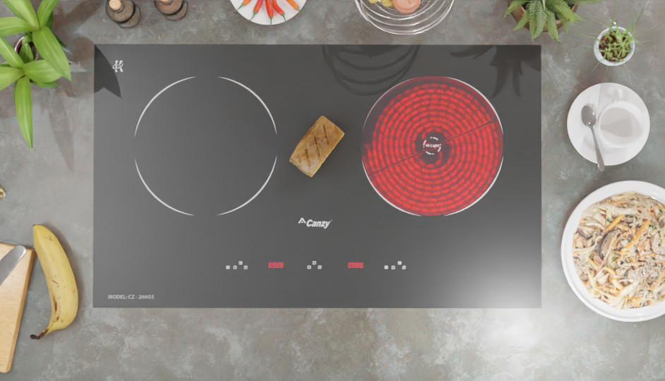 Sản phẩm Bếp từ đôi hồng ngoại cảm ứng CANZY CZ-200GS có Mặt kính Vitro Ceramic này gồm 2 lò, là sự kết hợp hoàn hảo giữa 1 bên bếp từ sử dụng các bộ nồi chảo inox từ, tiết kiệm điện và đun nấu nhanh hơn và 1 bên bếp điện hồng ngoại không kén nồi và có thể nướng trực tiếp trên bề mặt bếp, quá tuyệt vời phải không nào, Chắc chắn sản phẩm sẽ mang đến sự lựa chọn hoàn hảo cho bà nội trợ hiện đại, giúp nấu ăn nhanh hơn và tiết kiệm thời gian.