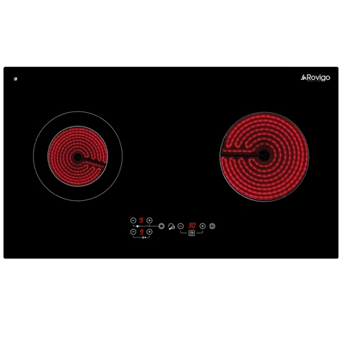 - Điều khiển cảm ứng siêu nhạy, dễ dùng: Bếp điện Rovigo RPLH 98346 được trang bị hệ thống điều khiển cảm ứng dạng ẩn siêu nhạy. Bảng điều khiển thiết kế tối giản, dùng chung cho 2 vùng nấu, tiện dụng với đầy đủ các phím chức năng: phím nguồn, hẹn giờ, khóa an toàn, chọn vòng nấu, điều nhiệt,… chỉ cần chạm nhẹ và lựa chọn với thao tác điều chỉnh chính xác. Đèn Led hiển thị sáng rõ, dễ dàng quan sát chương trình nấu để điều chỉnh