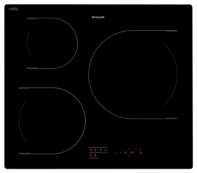 Bếp từ Brandt TI118B - công nghệ CYCLIC mới, kiểm soát các khu vực nấu.
