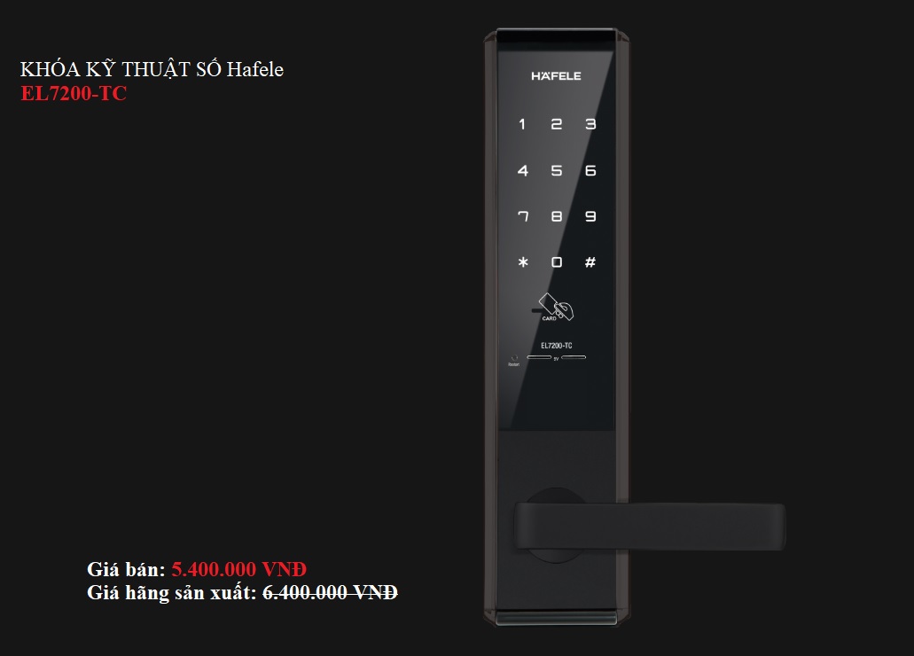 Thông số kỹ thuật Khóa điện tử Hafele EL7200-TC