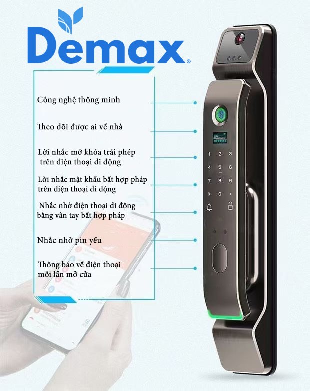 Khóa cửa vân tay,nhận diện khuôn mặt Face ID-3D Demax SL928DG-APP WIFI - Của Đức