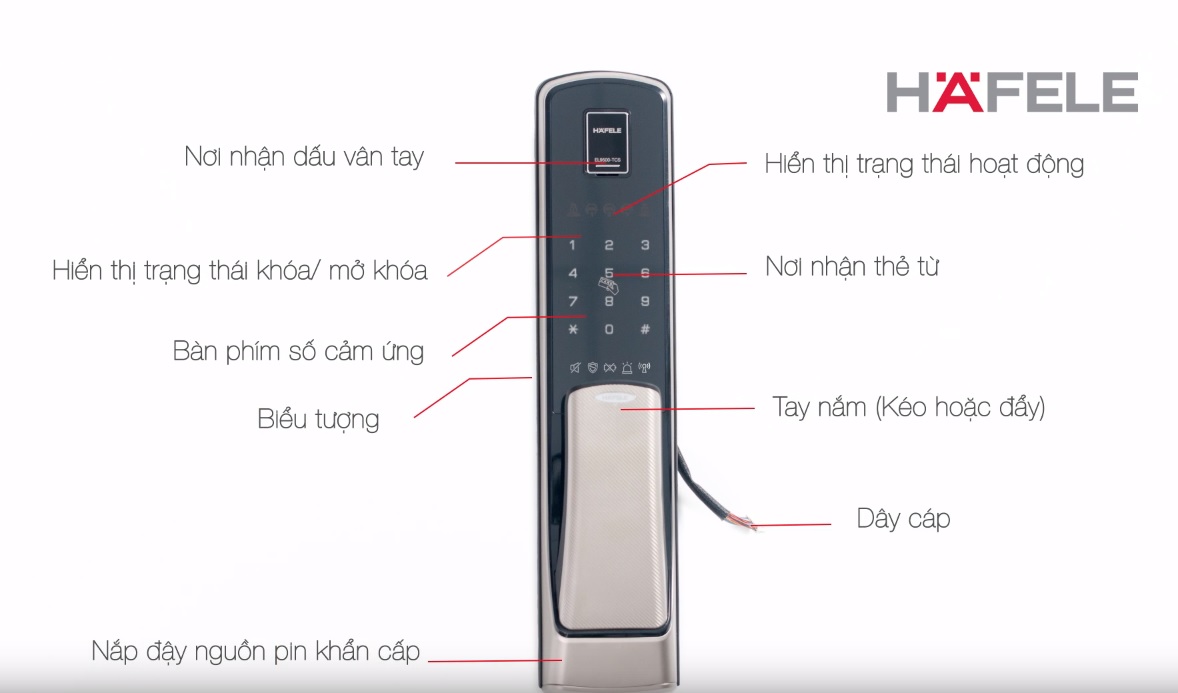 - Nguyên tắc hoạt động: Vận hành bằng mã pin, khóa thẻ, chìa cơ, vân tay cảm ứng điện dung