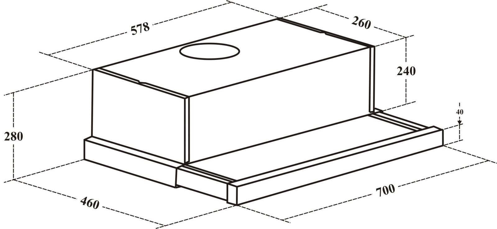 - Kích thước ống hút : 700R x 260S x 500C .