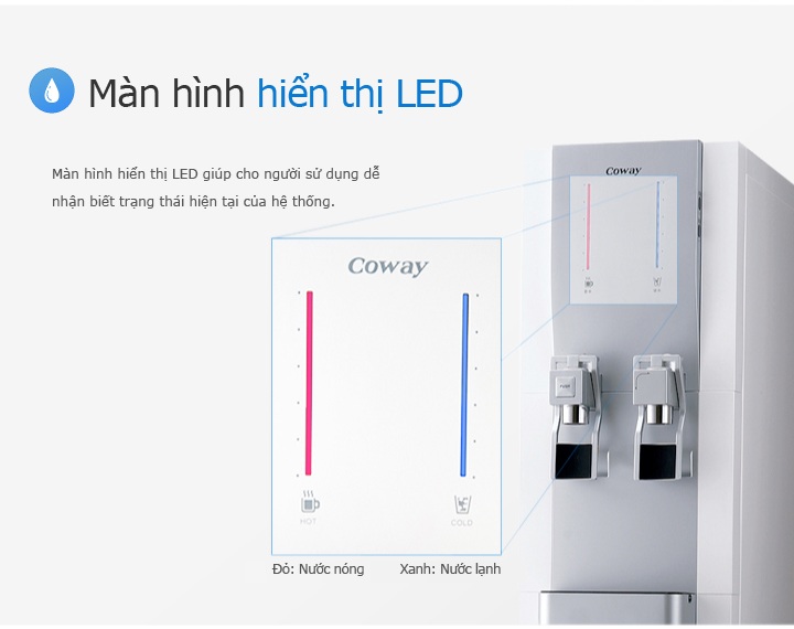 » Màn hình hiển thị LED giúp cho người sử dụng dễ nhận biết trạng thái hiện tại của hệ thống. Vì vậy, rất dễ nhận biết nhiệt độ của nước với đèn báo trên thân máy.
