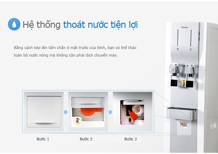 » Máy có hệ thống thoát nước thông minh được cải tiến, bạn chỉ cần kéo lên tấm chắn ỡ mặt trước của bình, bạn có thể tháo toàn bộ nước nóng mà không cần phải dịch chuyển máy.