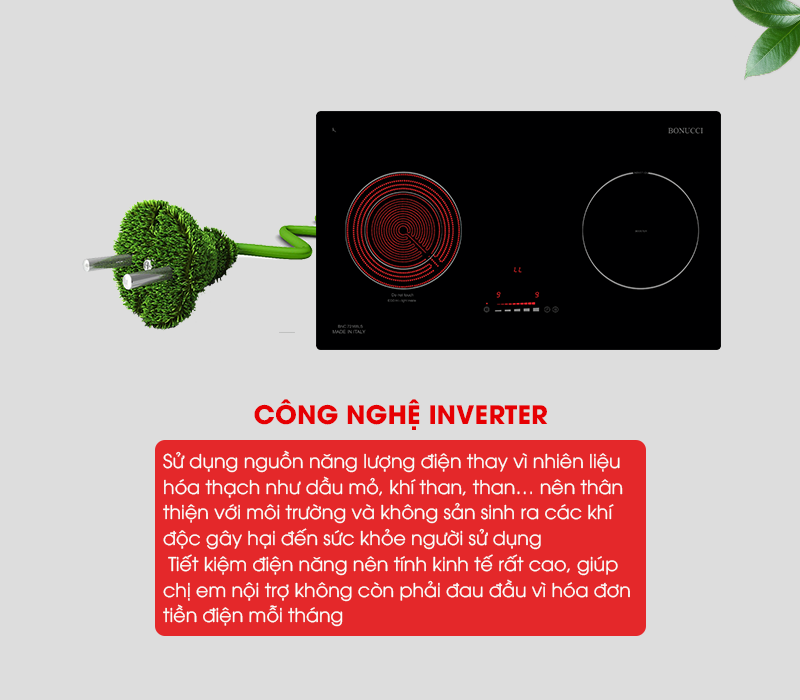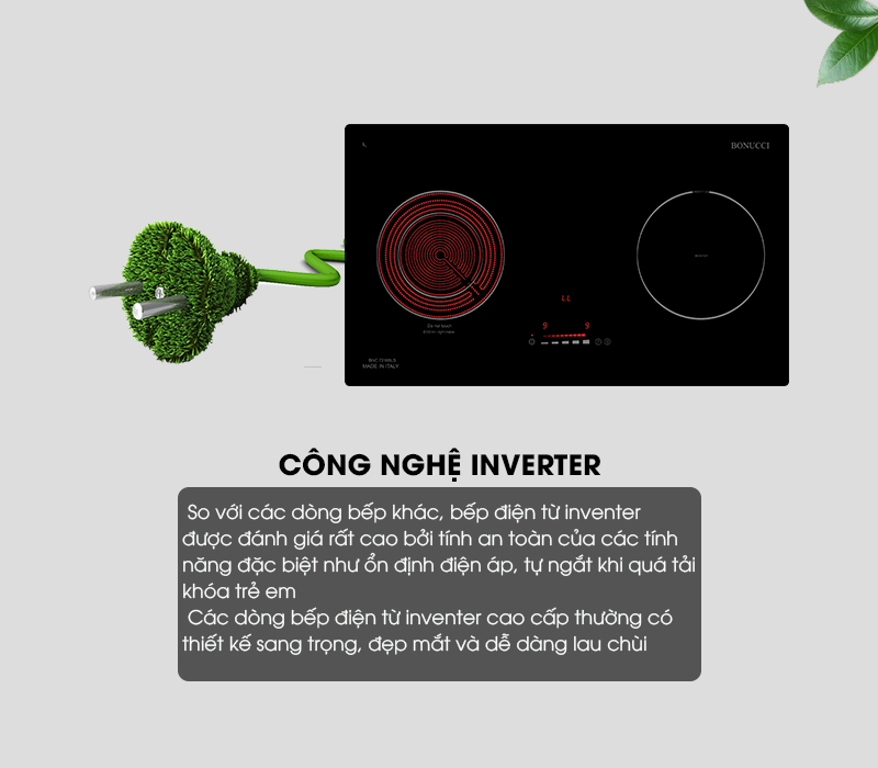 Công nghệ Inverter hiểu một cách đơn giản là là công nghệ giúp biến đổi nguồn điện có tần số và điện áp cố định trước kia thành nguồn điện có điện áp và tần số có thể điều chỉnh được, theo nhu cầu sử dụng, khiến cho người dùng dễ dàng kiểm soát công suất của bếp điện từ trong khi hoạt động. Nói tới Inverter là nói tới khả năng tiết kiệm điện vô cùng đỉnh cao của công nghệ này.
