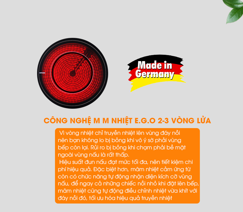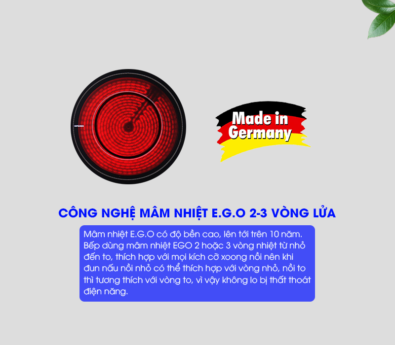 2. CÔNG NGHỆ MÂM NHIỆT E.G.O 2-3 VÒNG LỬA - MADE IN GERMANY