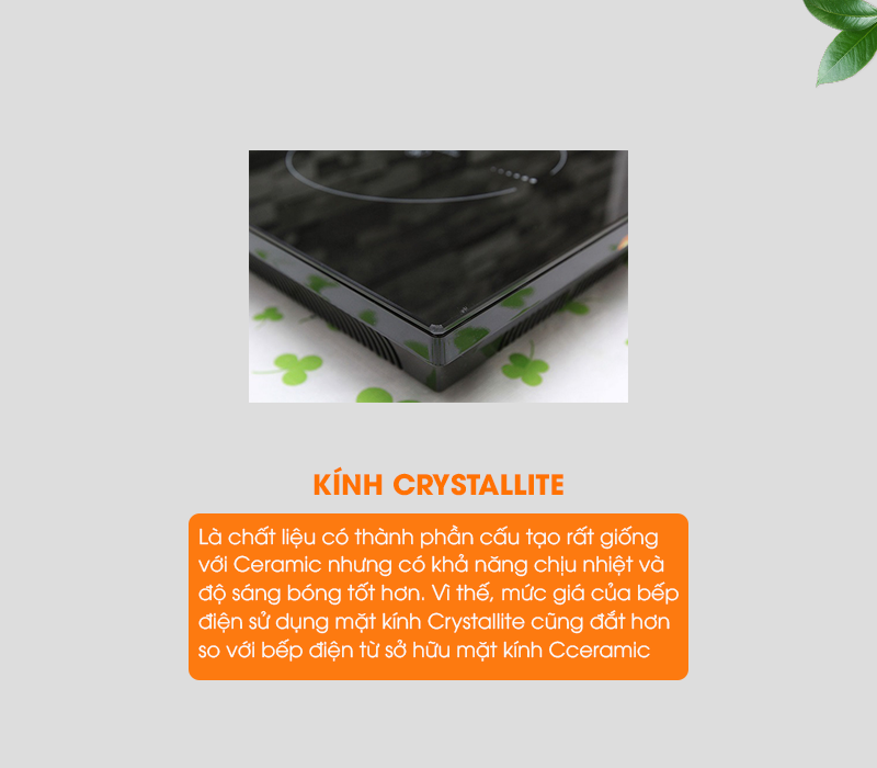 Là chất liệu có thành phần cấu tạo rất giống với Ceramic nhưng có khả năng chịu nhiệt và độ sáng bóng tốt hơn. Vì thế, mức giá của bếp điện sử dụng mặt kính Crystallite cũng đắt hơn so với bếp điện từ sở hữu mặt kính Cceramic.